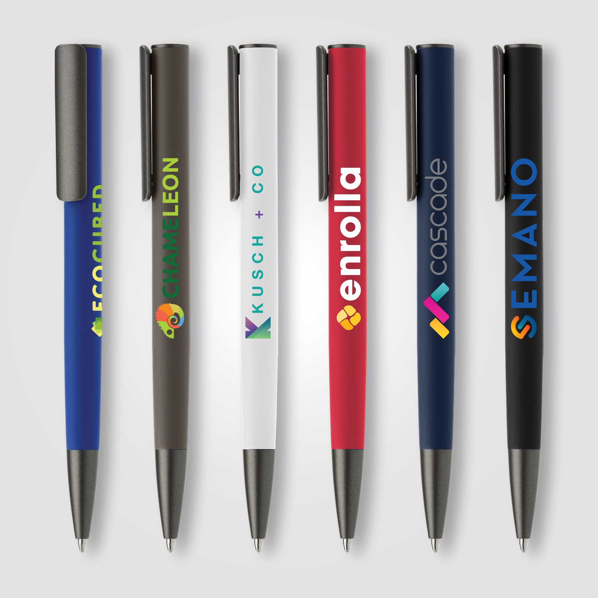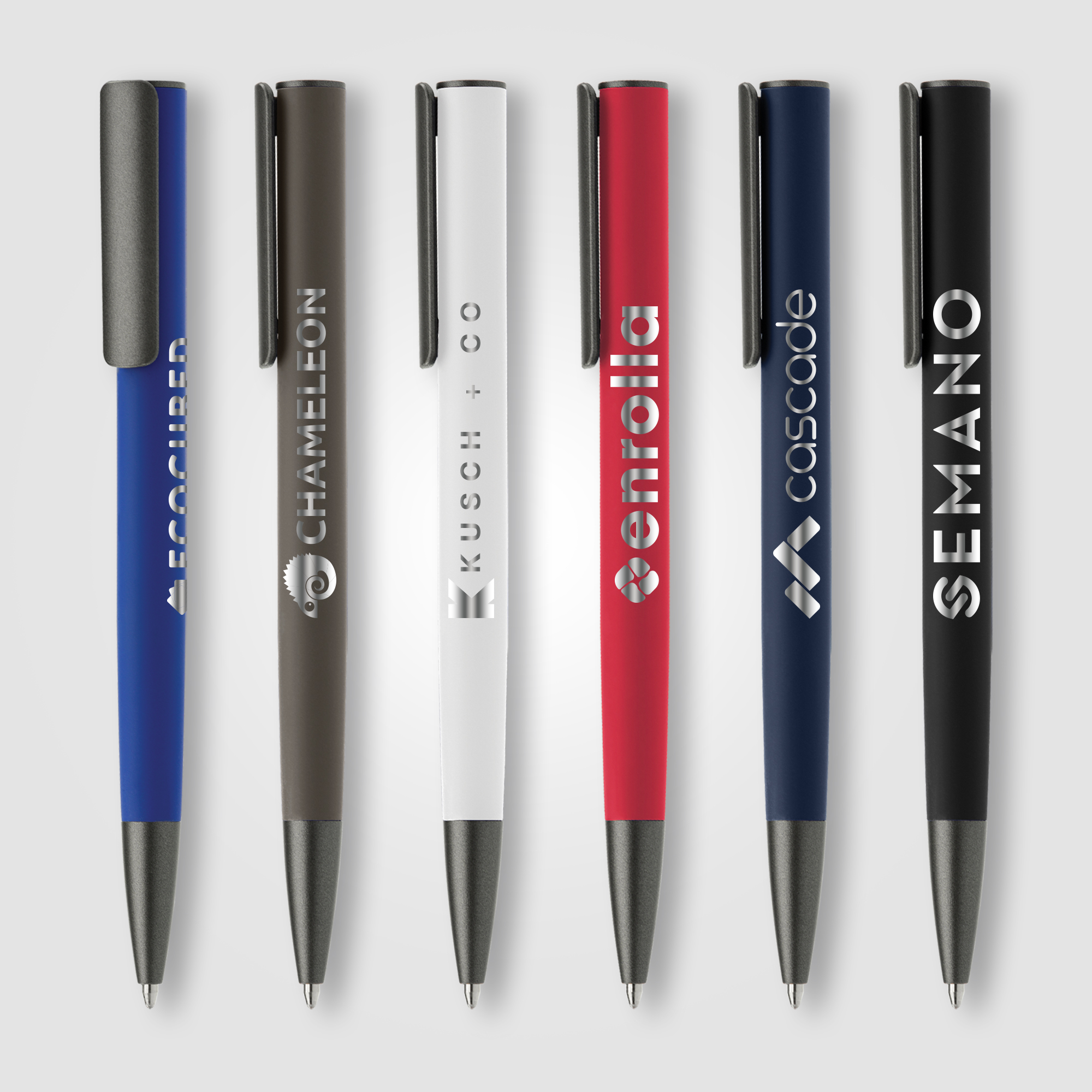 The Jagger metal ballpoint pen has a luxury tactile feel and contemporary gunmetal trim. Laser engrave the barrel to reveal a striking silver mirror finish or digitally print with ColourJet. Fitted with an Italian Supreme refill and Eversmooth elite ® German ink and it writes up to 2000 meters for the best writing experience and longest-lasting branding. Choice of blue or black writing ink.